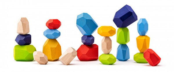 Motorická balanční hračka ze dřeva pro děti od 3 let. Děti mají za úkol postavit na sebe co nejvíce dřevěných kamenů tak, aby věž z nich nespadla. Kameny jsou speciálně zpracované tak, aby plošky, na kterých stojí, byly stabilní pouze v konkrétních polohách pro konkrétní plošky dalších kamenů. Proto je třeba využít nejen motorické, ale i logické schopnosti a kombinatoriku.