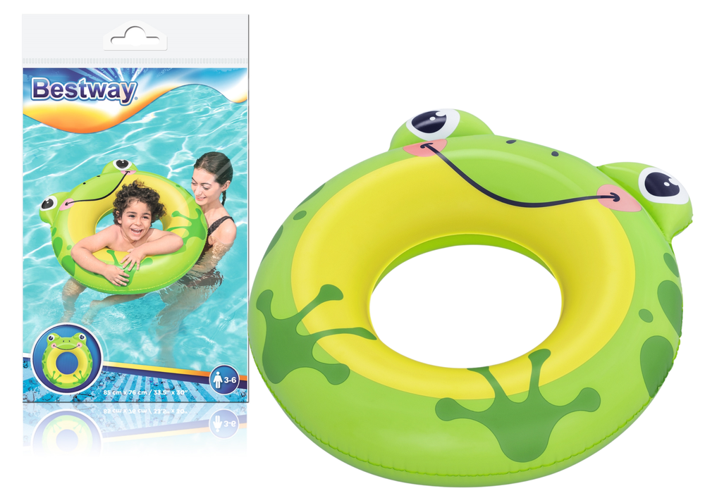 Nafukovací kruh s motivem pandy má motiv 79 x 85 cm. Nafukovací kruh bude skvělým doplňkem během dovolené, bez ohledu na to, zda se koná u moře nebo v bazénu. Jsme si jisti, že kruh snadno povzbudí vaše dítě k vodním aktivitám a diverzifikaci jeho her. Díky barevným motivům kruh vynikne a dítě, které ho používá, se stává viditelnějším. Kruh je vyroben z odolného PVC materiálu, který je odolný proti poškození a je určeno pro děti od 3 do 6 let.