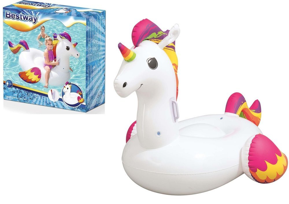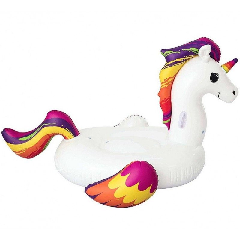 Nafukovací jednorožec má dvě stabilní rukojeti a široké sedátko, které zajišťuje stabilitu a pohodlí. Tento nafukovací plavecký doplněk je vhodný do všech podmínek, ať už u moře, jezera nebo bazénu.