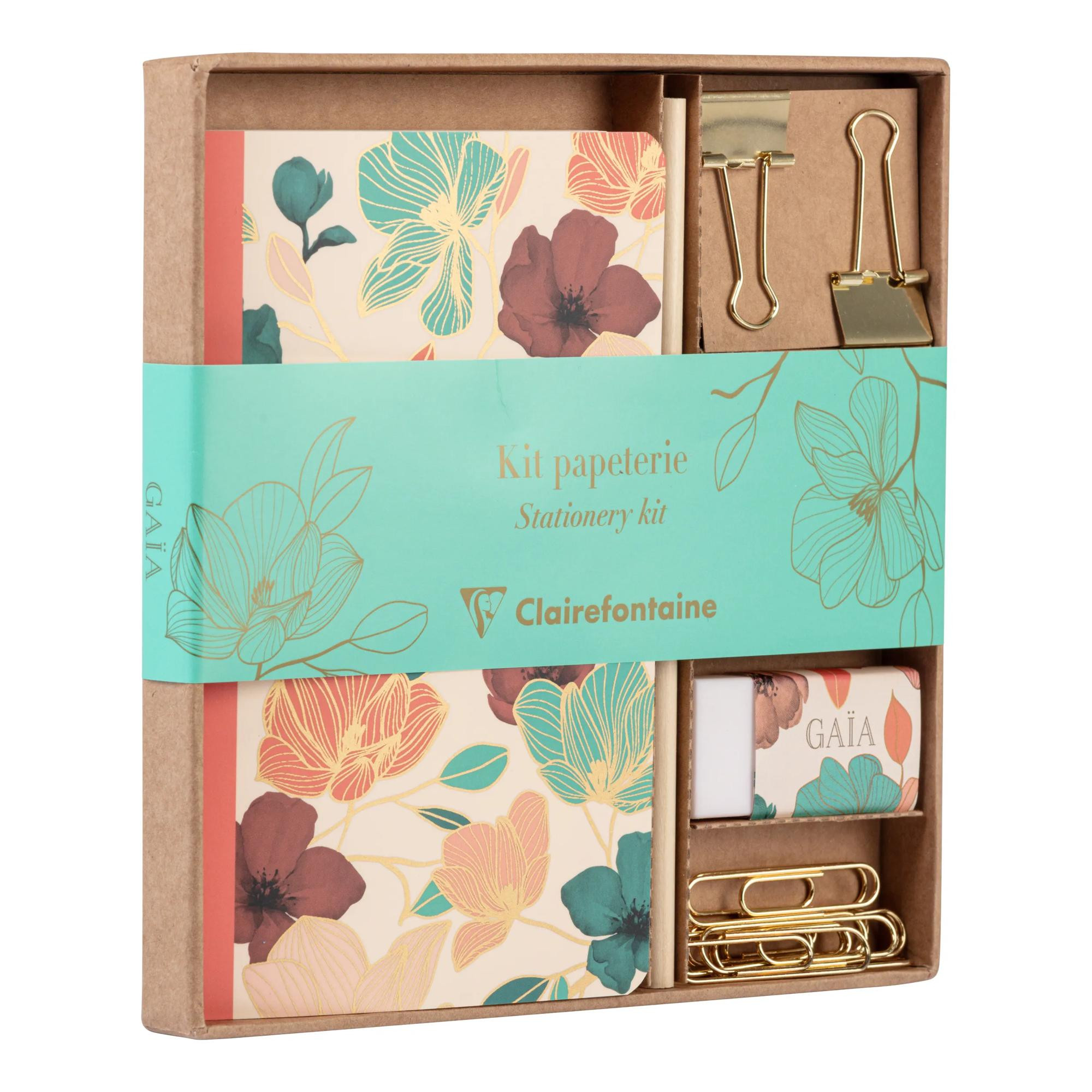 Elegantní sada z kolekce Gaia beige obsahuje vše, co potřebujete pro stylové poznámky a organizaci: designový zápisník, tužku, sponky a gumu – vše v jednom setu, inspirovaném přírodními motivy s decentními zlatými detaily vytvořenými sítotiskem. Praktický a stylový dárek potěší každého, kdo má rád pořádek při organizaci každodenních povinností.