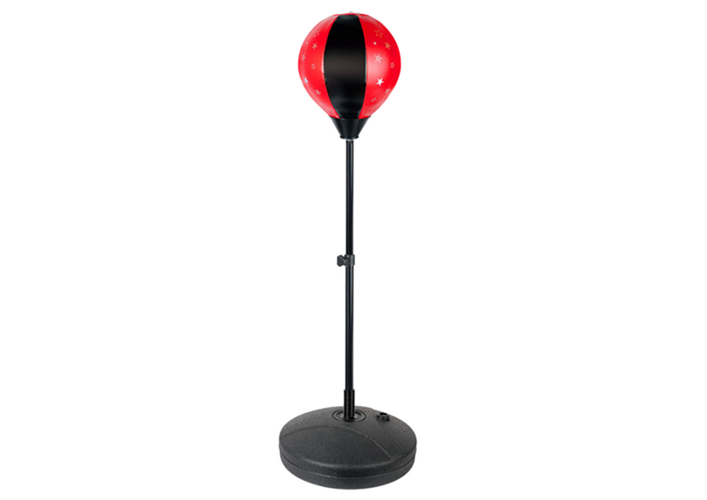 Boxovací sada pro děti je ideálním řešením pro mladé sportovní nadšence, kteří chtějí rozvíjet své boxerské dovednosti bezpečným a zábavným způsobem. Hlavním prvkem sady je boxovací hruška umístěná na nastavitelném stojanu. Hruška je černo-červené barvy, ozdobená hvězdičkami, což jí dodává na atraktivitě a dynamice. Samopostavovací hruška se po každém úderu vrátí do své původní polohy, což umožňuje nepřetržitou zábavu.