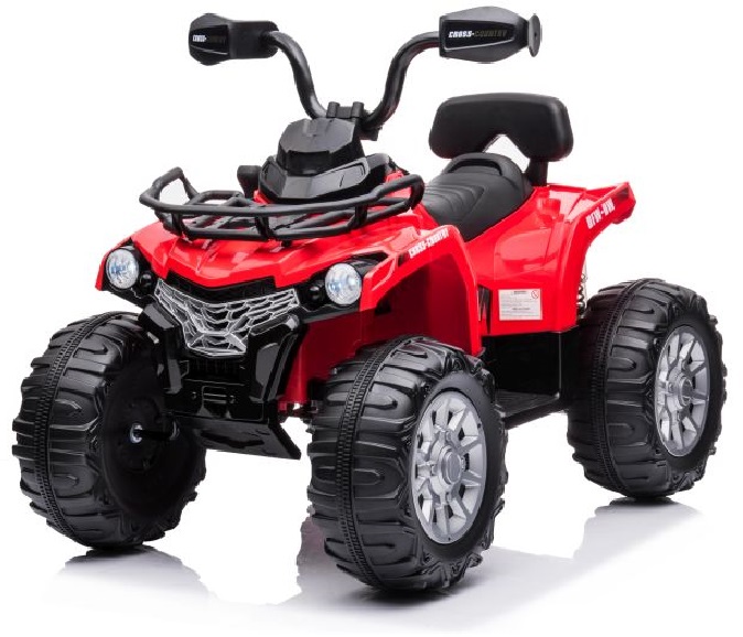 Dětská elektrická čtyřkolka s výkonným elektrickým motorem, gelovou baterií a bohatým vybavením. V interiéru se vyjímá sedadlo z ekologické kůže a hudební panel se vstupy pro MP3 a USB. Čtyřkolka má předem nahrané melodie a vydává zvuky motoru při startování. Je vybavena předními LED světly.