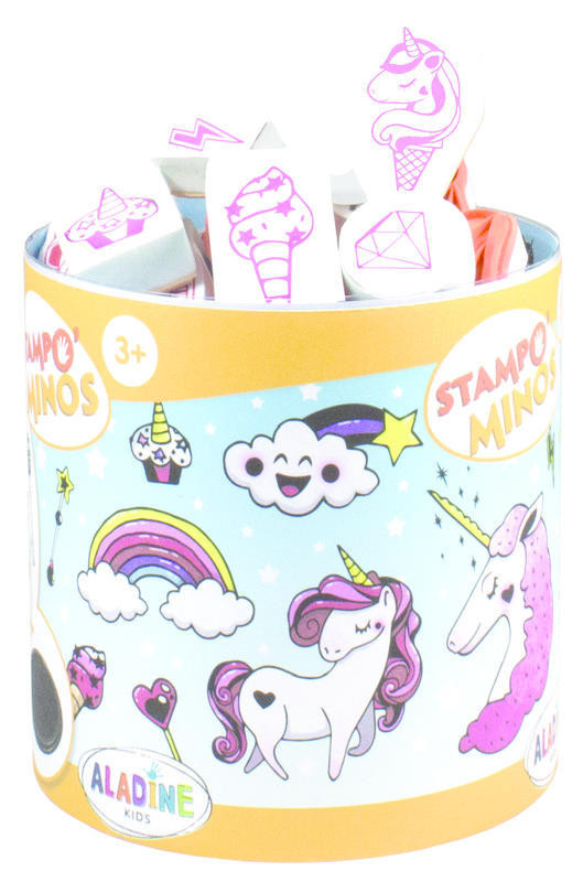 Sada gumových razítek na pěnové hmotě s motivy jednorožců vybízí k nejrůznějšímu tvoření. Sada obsahuje inkoustovou podložku s omyvatelným inkoustem a 18 razítek. Unvitř balení je podrobný návod na použití v češtině.Razítkování s dětmi je jednoduché, ale několik rad předem neuškodí. Před razítkováním si prosím připravte vlhčené ubrousky na otírání prstů a pastelky (resp. barvy a štětce).Pro větší přehlednost doporučujeme společně s dítětem razítka vyskládat z obalu na nevzorovaný tác, nebo čtvrtku a roztřídit je podle párových souvislostí.Razítka se "namáčejí" do podušky spodní gumovou (oranžovou) stranou. Ještě před prvním namočením do inkoustu se nám osvědčilo razítko vzít do ruky, otočit ho a prstem projít po textuře gumového štočku. Dítěti tak ukázat stranu, která razítkuje se slovy: “Podívej, razítkuje vždy tato strana.“. K dokonalému obarvení razítko stačí několikrát jemně přitlačit na polštářek.Poté se razítko položí spodní namočenou stranou na papír, a prsty zatlačí postupně na všechny části razítka, aby se dokonale obtiskly všechny části motivu, zejména ty uprostřed.Po ukončení práce razítka mohou děti sami očistit vlhčenými ubrousky. Razítka stačí potom omýt vlažnou mýdlovou vodou a nechat volně vyschnout na vzduchu. Razítkovací podušku vždy zavírejte a odložte víkem dolů. Obtisky lze dále vybarvovat pastelkami, vodovkami a obrázky dále dotvářet.Děkujeme naší ambasadorce @lenik_4 za krásné fotky.