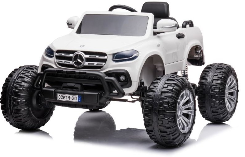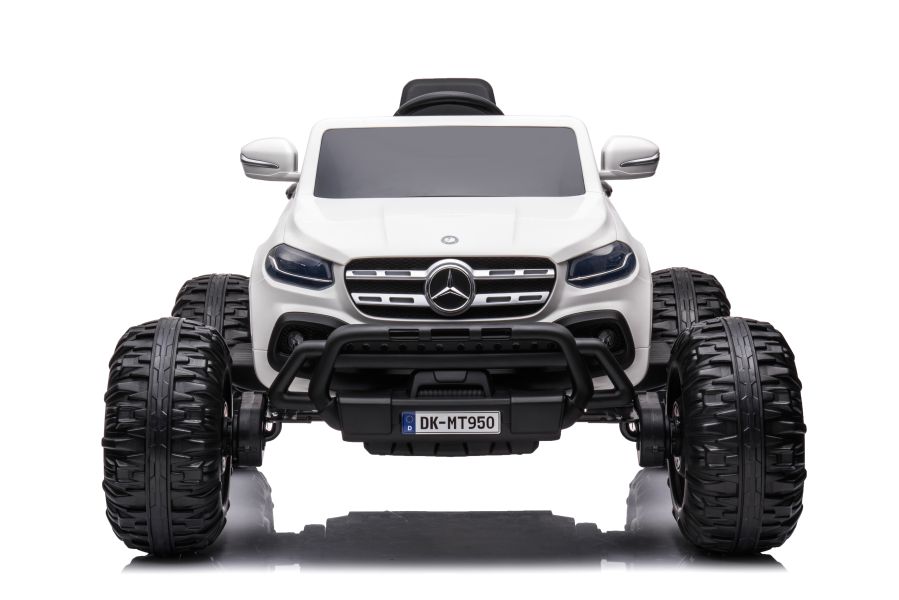 Dětské elektrické autíčko Mercedes X 350d 4Matic s čtyřmi motory o výkonu 45W a dvěma bateriemi s kapacitou 12V 7AH má nosnost 35 kg. Sedadlo je potaženo ekologickou kůži a má bezpečnostní pás. Výhodou autíčka je odpružená náprava.