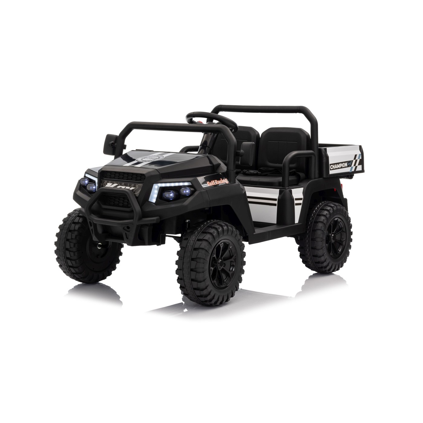 Elektrické auto Pick-Up Champion 24V je silný a stylový vůz pro dva malé řidiče. Díky dvěma motorům o výkonu 200W (2 x 200W) a silnému akumulátoru 24V 9Ah je tento pick-up připraven zdolávat asfalt, trávník i mírný terén. Měkká EVA kola a odpružení vpředu i vzadu zajišťují hladkou jízdu bez otřesů.
