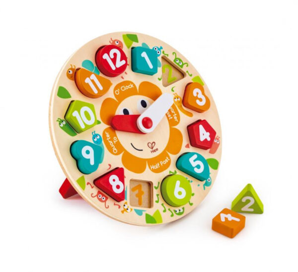 Dřevěné puzzle hodiny se stojánkem jsou nepostradatelným pomocníkem, díky kterému si děti procvičí hodiny, minuty, čísla a barvy. Hodiny mají vyndavací číslice. Každé číslo má jiný tvar. Díky této hračce bude pro děti jednodušší představit si, kdy mají jít spát, kdy je čas oběda nebo kdy si mohou hrát. Kvalitní dřevěné provedení.