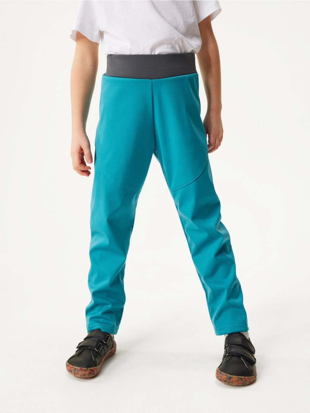 Dětské softshellové kalhoty bez zateplení pružné Sporty, Smaragdová – vel. 122/128