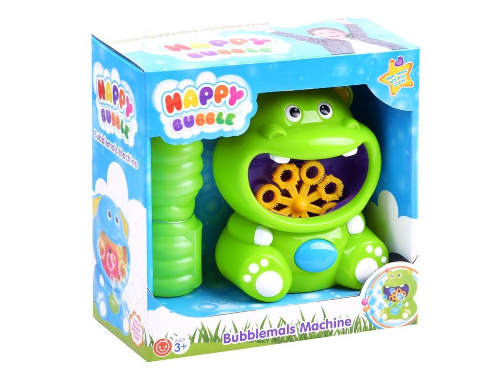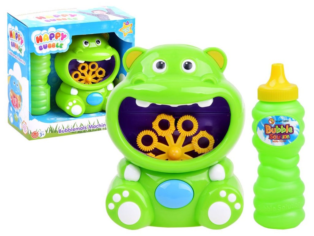 Bublinkovače jsou oblíbenou hračkou malých i velkých dětí. Stroj na výrobu mýdlových bublin ve tvaru hrocha poskytne každému dítěti mnoho radosti.Bublinkovač umožňuje ze stroje uvolnit barevné bubliny. Jediné, co musíte udělat, je nalít tekutinu do otvoru, ve kterém je umístěn štít s očima, zmáčknout tlačítko umístěné na břiše hrocha, spustit ventilátor, otočit štít a je hotovo.
