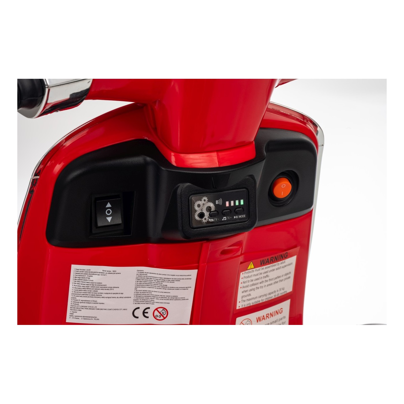 Vespa vydrží 1 hodinu senzační jízdy. Na bezpečí dítěte dbají postranní kolečka a automatická brzda, která zastaví, když dítě spustí nohu z plynového pedálu. Dětský skútr je vhodný pro děti od 3 let.