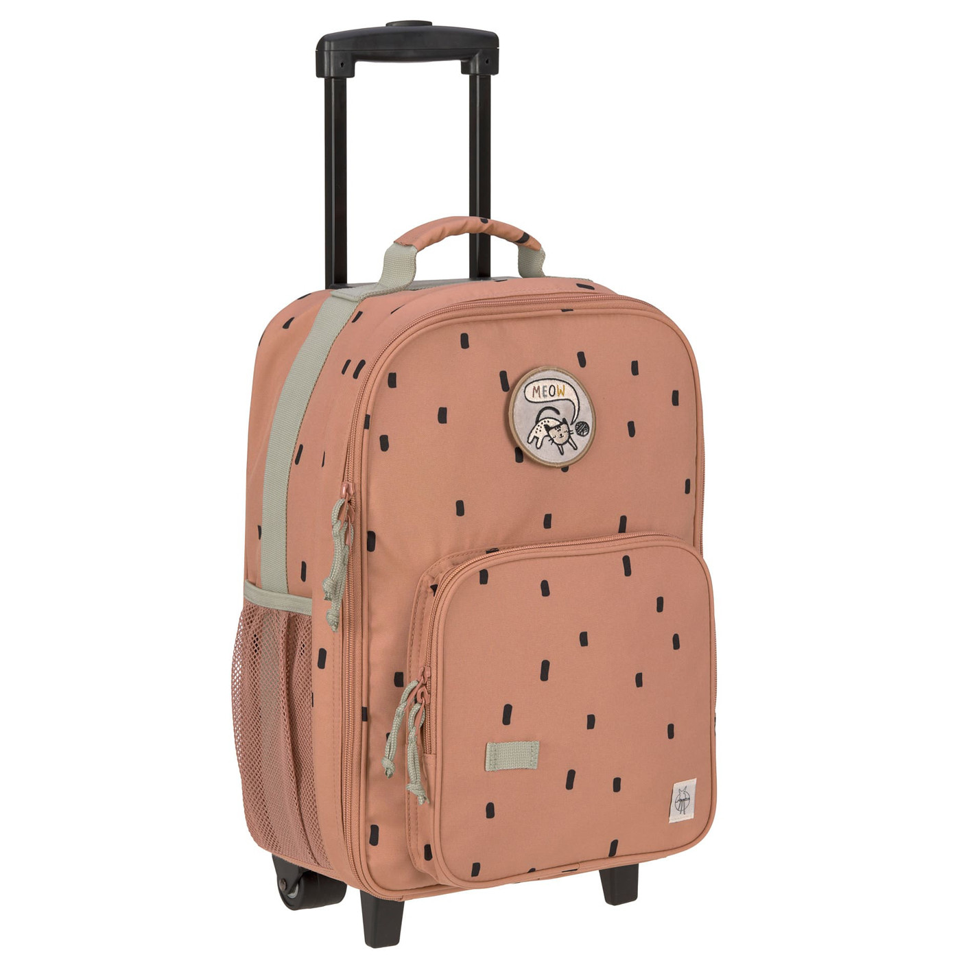Praktický kufr na kolečkách z kolekce LÄSSIG Happy Prints caramel je ideální zavazadlo pro malé dobrodruhy a cestovatele od 3 let. V promyšleně navržených přihrádkách má vše své místo. Kufr je vybaven kolečky, což usnadňuje pohodlný a snadný převoz zavazadla. Teleskopická rukojeť pro převážení je nastavitelná pomocí tlačítka do tří výškových úrovní, což umožňuje pohodlné ovládání pro děti různé výšky. Na přední straně kufru se nachází obrázek se zvířátkem. Pomocí poutka se zapínáním na patentky lze nášivky snadno připevnit a vyměnit podle potřeby.