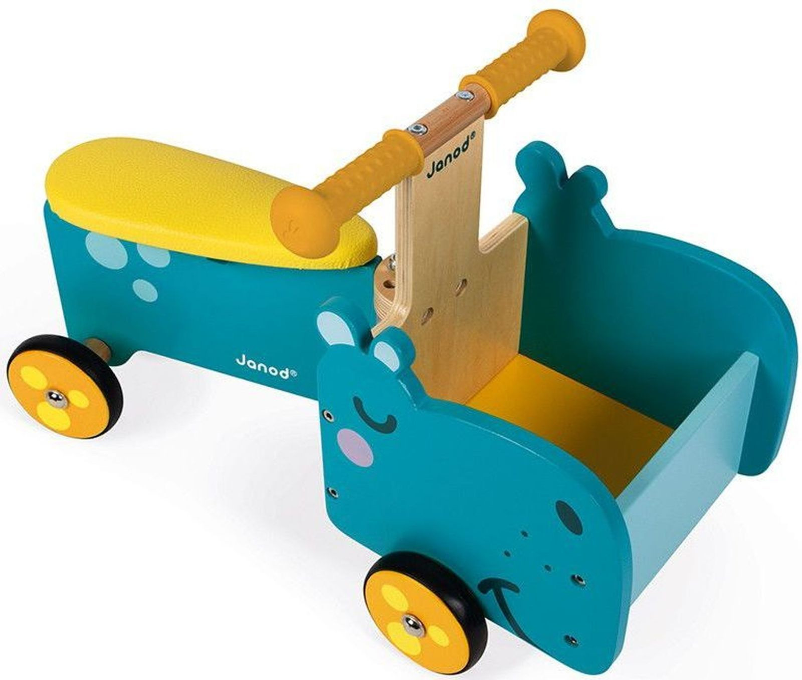 Dřevěné odrážedlo pro nejmenší děti od 1 roku s vozíkem na hračky. Krásná a trendová hračka ve tvaru hrocha je ideální pro rozvoj motorických schopností a rovnováhy vašeho dítěte. Stane se ideálním společníkem bez ohledu na to, zda je používáno jako vozík na hračky, nebo jako odrážedlo. V obou případech pomůže dětem lépe zvládnout první krůčky, motoriku a zároveň jim umožní prozkoumat svět kolem sebe a navíc mít vždy u sebe svého oblíbeného mazlíka.