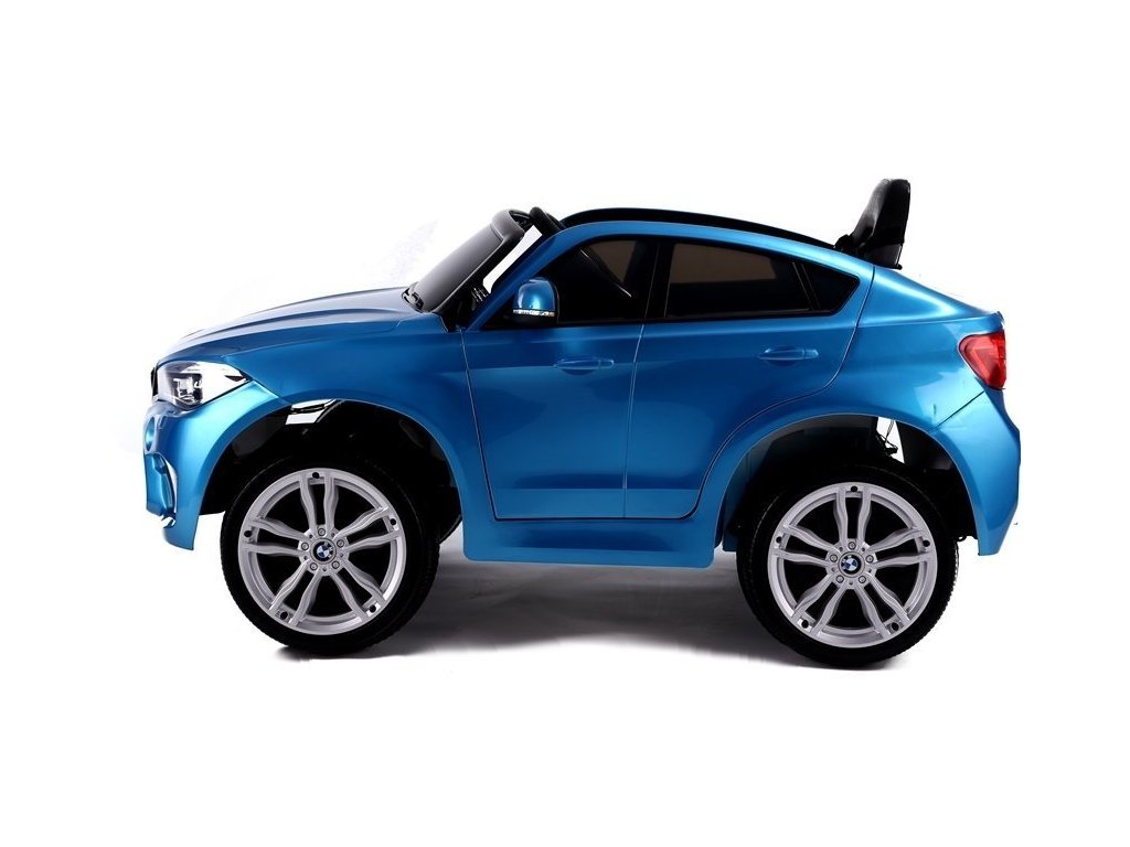 Dětské elektrické autíčko BMW X6 s inovativním dálkovým ovládáním určeným pro rodiče. Elektrické autíčko má pohodlnou sedačku a pro bezpečnost dítěte je na sedačce umístěn bezpečnostní pas. Autíčko je vybaveno palubní deskou, volantem, svítícími předními světly a panelem audio. Vozidlo lze ovládat dvěma způsoby, bud‘ pomocí dálkového ovladače, který je určený pro rodiče, kdy rodič sám volí směr a rychlost jízdy nebo dítě může řídit autíčko zcela samostatně. Kola elektrického autíčka jsou měkká pěnová a umožňují tak plynulou a příjemnou jízdu. BMW X6 pro každého milovníka velkých autíček!