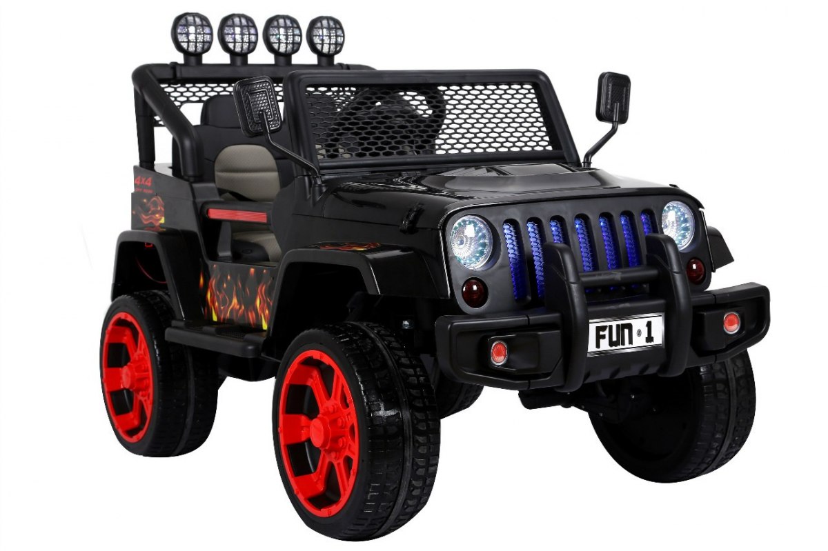 Dětské elektrické autíčko jeep Raptor Drifter s inovativním dálkovým ovládáním určeným pro rodiče. Elektrické Autíčko má skvěle pohodlnou sedačku a pro bezpečnost dítěte je na sedačce umístěn bezpečnostní pas. Autíčko je také vybaveno palubní deskou, volantem a svítícími předními světly a vrchním panelem. Vozítko lze ovládat dvěma způsoby, bud‘ pomocí dálkového ovladače určeným pro rodiče, kdy rodič sám volí směr a rychlost jízdy nebo dítě řídí autíčko zcela samostatně. Jeep má 4 motory o výkonu každý 45W, tudíž má náhon na všechna 4 kola! Kola jsou měkká pěnová a umožňují tak plynulou a příjemnou jízdu bez hrkání. Jeep pro každého milovníka velkých aut!