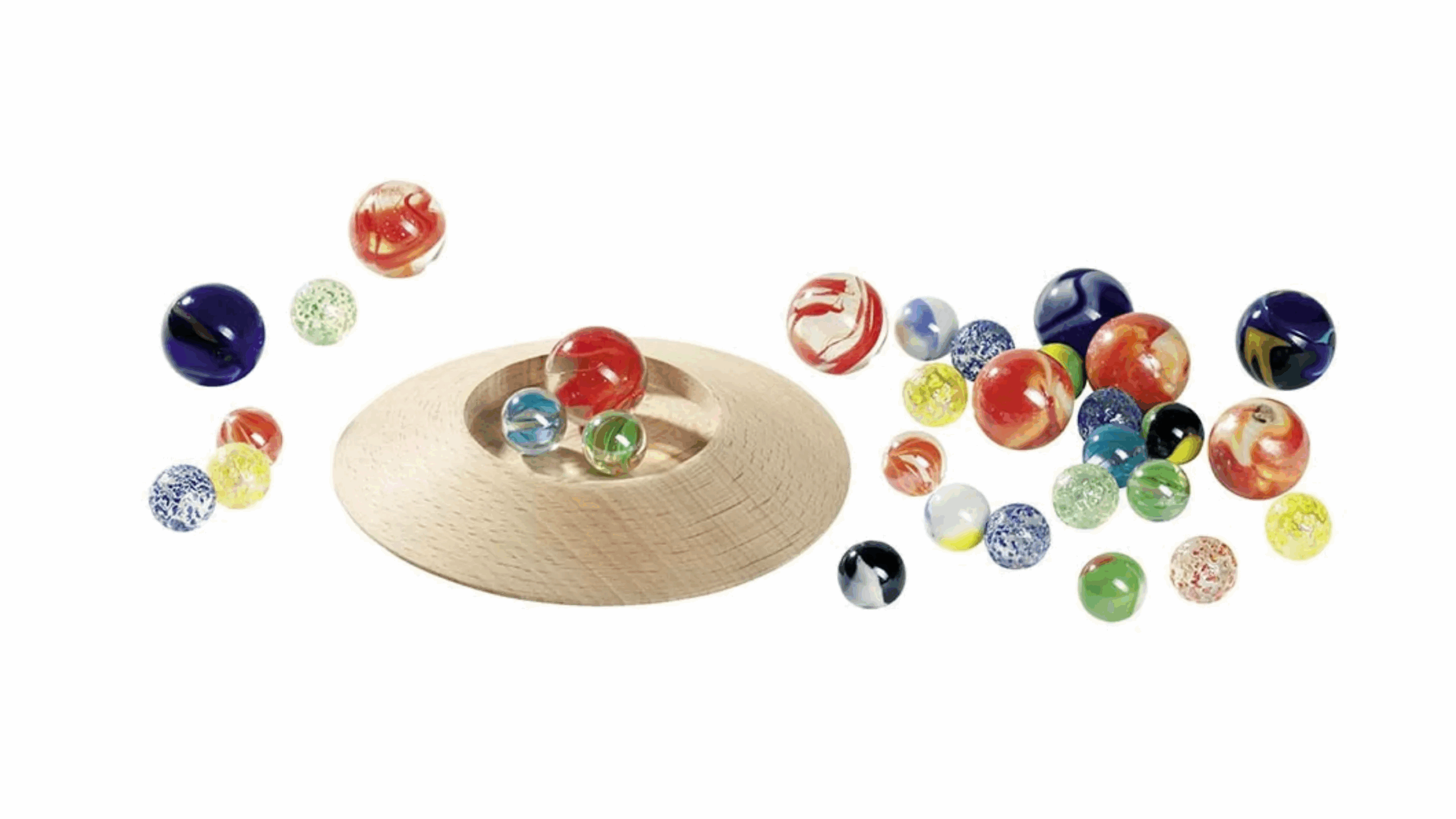 Sada obsahuje 31 skleněných kuliček rozličných velikostí a barev. Součástí balení je dřevěný důlek a tištěné návody popisující různé možnosti hraní kuliček. Dřevěný důlek má průměr 12 cm a umožňuje hraní i v domácím prostředí.