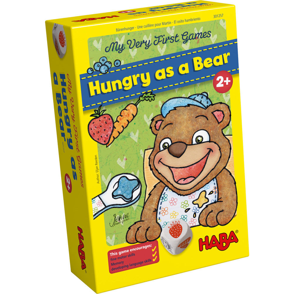 Malý medvídek má velký hlad. Nakrmíte ho? Variace her pro 1–3 hráče od 2 let. Úkolem dětí je nakrmit lžící medvídka. Talíř s různými dobrotami je již připravený. A kostka vám poradí, čím medvídka nakrmit. Děti se učí házet kostkou, pochopit daný úkol a manipulovat lžící při krmení medvídka. Můžete si zahrát kooperativní hru a procvičit si spolupráci, hru, při které si děti trénují jazykové dovednosti nebo hru na procvičování paměti. A navíc hra rozvíjí jemnou motoriku.