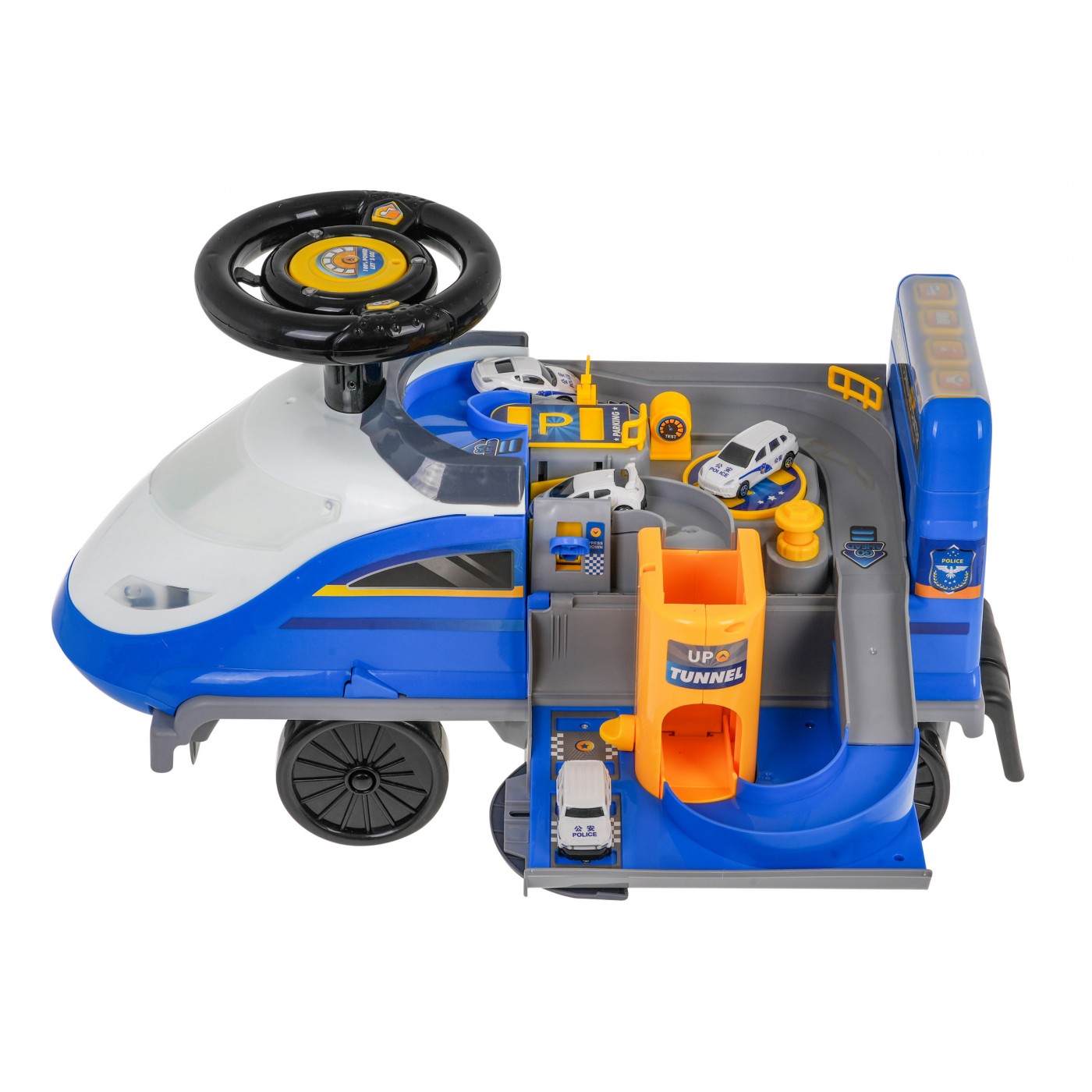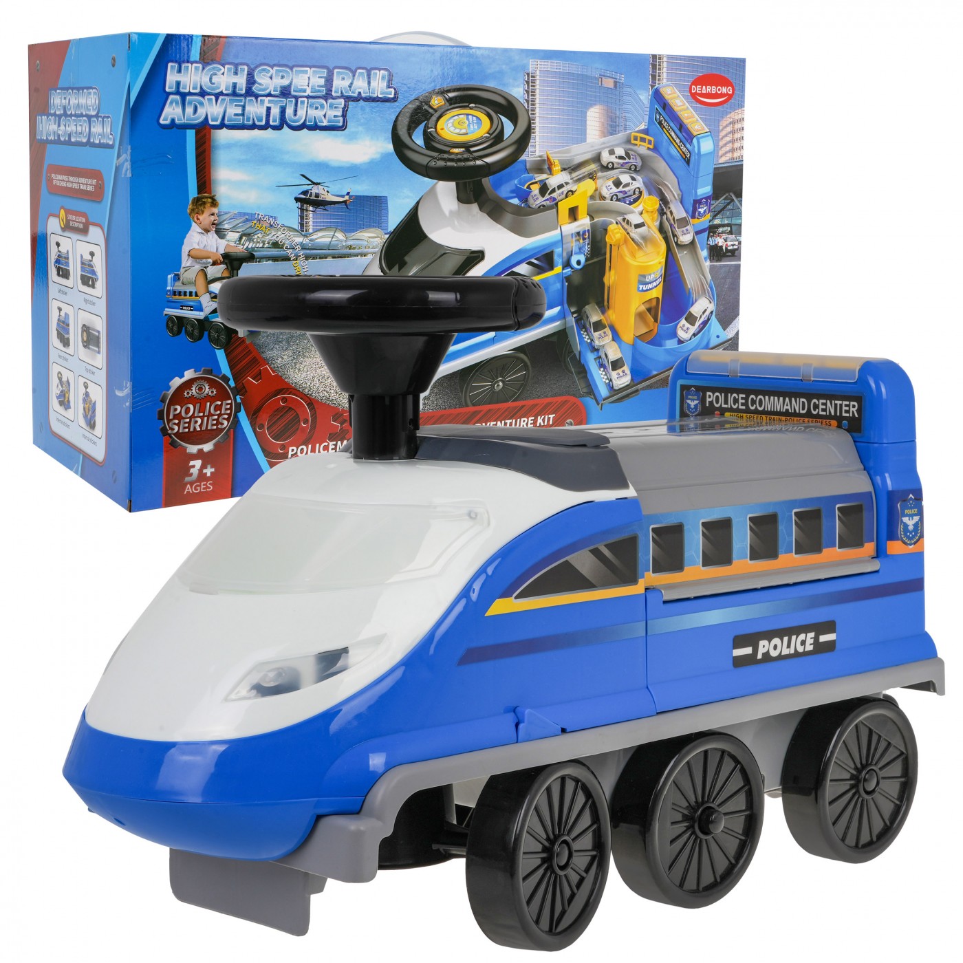 Interaktivní odrážedlo s policejním parkovištěm pod sedadlem, zvukovými a světelnými efekty je vhodná pro děti od 3 let. Na zadní straně lokomotivy je zvukový panel s tlačítky, jejichž stisknutím se ozývají melodie, příběhy a zvuky zvířat. Hlasový doprovod je v angličtině. Lokomotiva má svítící světlomety.