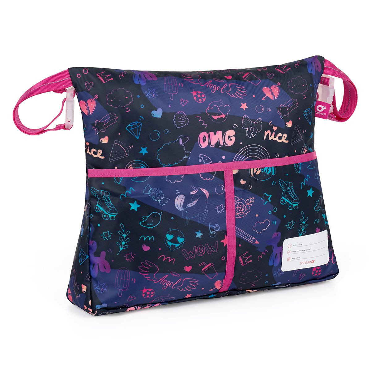 Jednoduchý kapsář na lavici z kvalitního a pevného materiálu. Jedna velká a dvě menší kapsy jsou určeny na uschování drobností každého školáka (vodové barvy a jiné školní pomůcky). Horní velká kapsa je uzavíratelná na zip, dvě boční kapsičky jsou volně přístupné. Pytlík je opatřen jmenovkou a popruhy s přezkami pro uchycení k lavici.