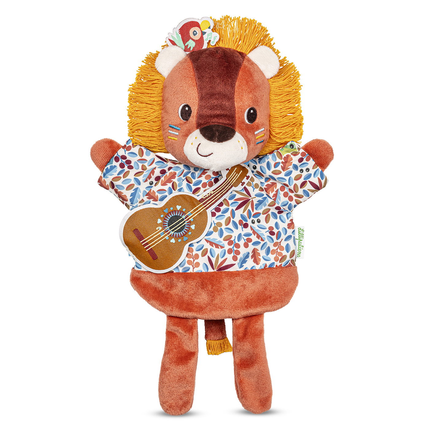 Plyšový maňásek v roztomilém motivu muzikanta lva Jacka. Velmi měkká hračka je příjemná na dotek a láká k pomazlení. Maňásek Jack má spoustu pěkných detailů a je ideální pro vyprávění různých příběhů. Záleží jen na vás a vaší fantazii, do jakých dobrodružství se lvíček pustí se svými kamarády. Lze prát v pračce na 30°C na jemný cyklus.