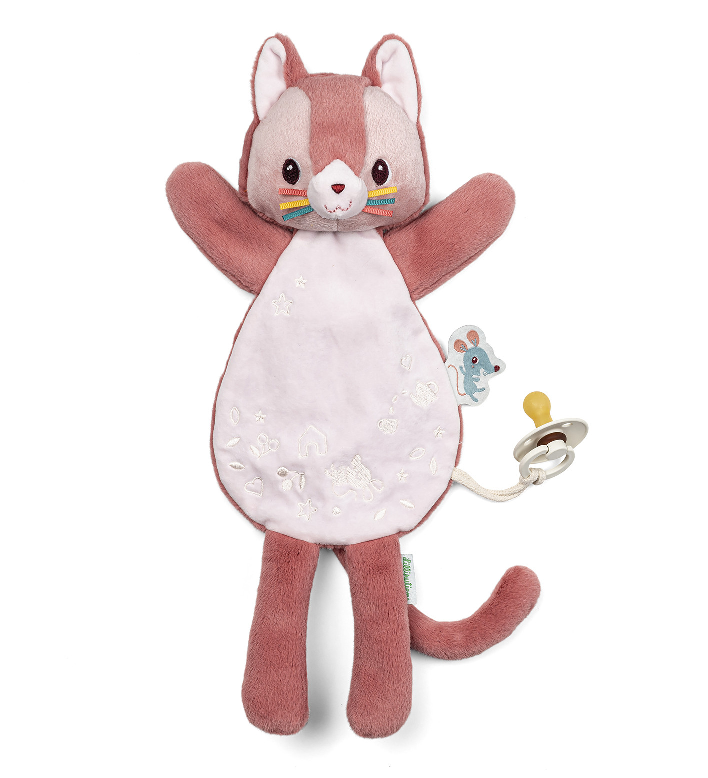 Plyšový maňásek kočička Jeanne je vhodný od narození. Hračka, která ve tmě svítí, dítě uklidňuje a nikdy ji neztratí. Malým bonusem tohoto plyšáka Lilliputiens je spona na dudlík – ideální pro to, aby se neztratil ani ve dne, ani v noci. Lze prát v pračce na 30°C na jemný cyklus.
