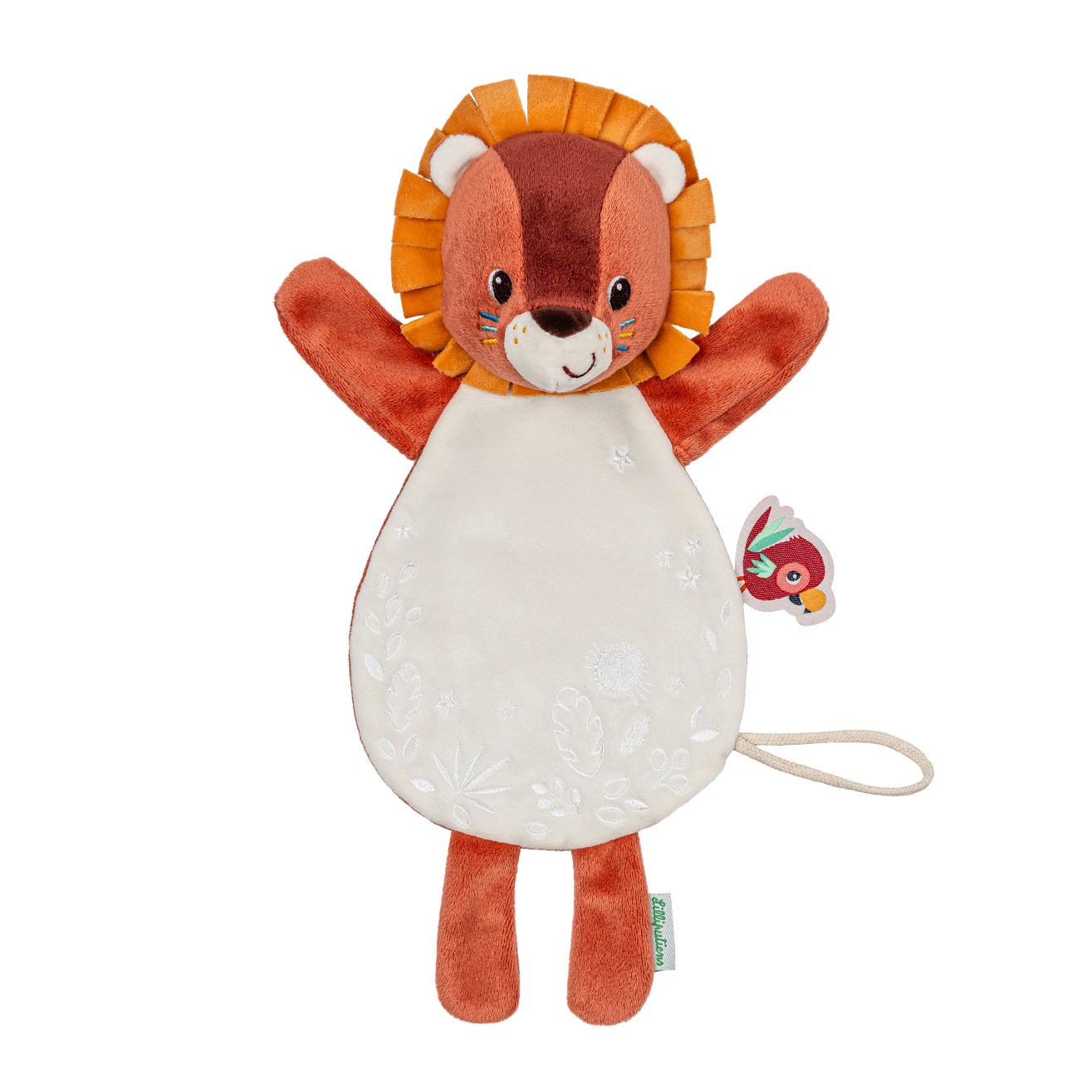 Plyšový maňásek lvíček Jack je vhodný od narození. Hračka, která ve tmě svítí, dítě uklidňuje a nikdy ji neztratí. Malým bonusem tohoto plyšáka Lilliputiens je poutko na dudlík – ideální pro to, aby se neztratil ani ve dne, ani v noci. Lze prát v pračce na 30°C na jemný cyklus.