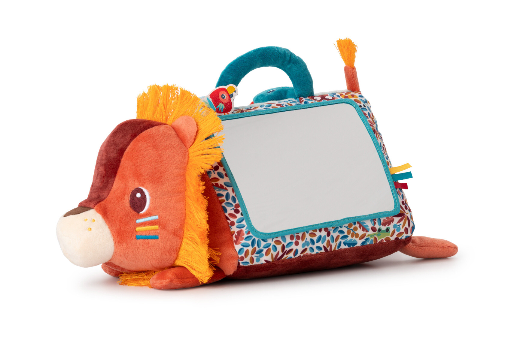 Lev Jack není jen obyčejná hračka; je to zábavný trojúhelníkový přítel, který rozvíjí smysly a fantazii dětí od 3 měsíců. Na jedné straně tohoto barevného lva je velké zrcadlo, ve kterém mohou děti objevovat svůj odraz, zatímco na druhé straně je čeká svět plný zábavných aktivit. Pod lístkem se ukrývá tukan Pablo, který dětem přináší radostný moment překvapení a objevování.