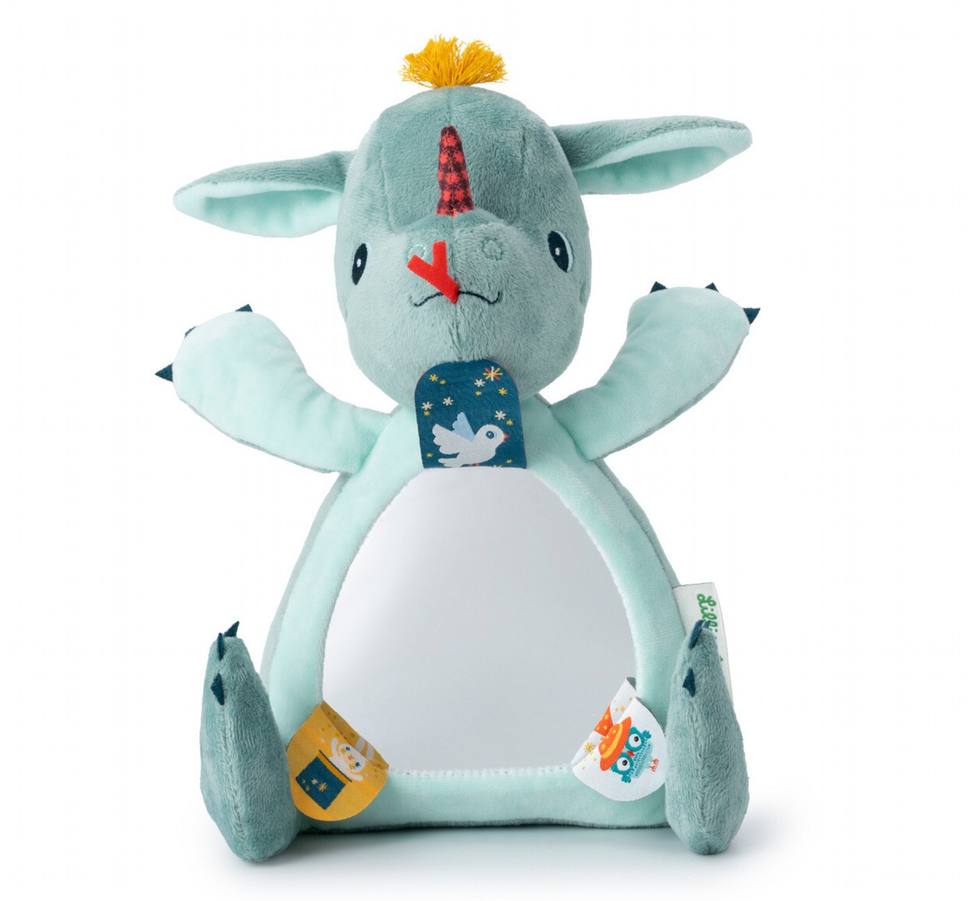 Dráček Joe je pro děti od 6 měsíců první krok do světa objevování! Dráček se stane prvním kamarádem pro vaše malé průzkumníky! Joe má v ručičkách magnety, dokáže si tak s nimi zakrýt své oči a hrát si s vaším dítětem na schovávanou, což vyvolá smích a nadšení. Ale to není vše! Na bříšku má Joe velké zrcátko, které zve děti k objevování jejich vlastního odrazu, čímž podporuje smyslové vnímání a první sebepoznání.