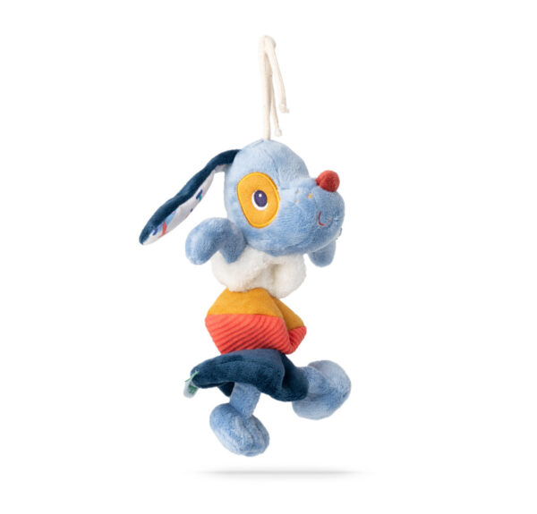 Zábavná textilní vibrační hračka pro děti od 6 měsíců. Když děti zatáhnou za nožičky, tak se pejsek Jules rázem vesele roztančí. Skvělá zábava a překvapivý pocit pro malé ručičky! Hračku lze zavěsit do dětských autosedaček, kočárků nebo na postýlku. Tancující pejsek upoutá pozornost dětí pohybem i zvukem a rozvíjí tak jejich smysly.