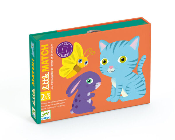 Jednoduchá hra z řady Little od Djeco (původní název: Little Match) Karetní hra pro děti od 2, 5 do 5 let. Vše je uzpůsobeno pro malé děti, délka hry, ilustrace i jednoduchá pravidla. Také karty jsou velikostně uzpůsobené pro malé dětské ruce. Doba jedné hry je cca 5 minut. Cílem hry je zbavit se všech svých karet. Pomozte zvířátkům správně se seřadit! Chcete-li zvířátka seřadit správně, musí být ve stejné barvě nebo stejného druhu! Rozměry balení jsou 15, 6 x 11, 7 x 2, 8 cm.