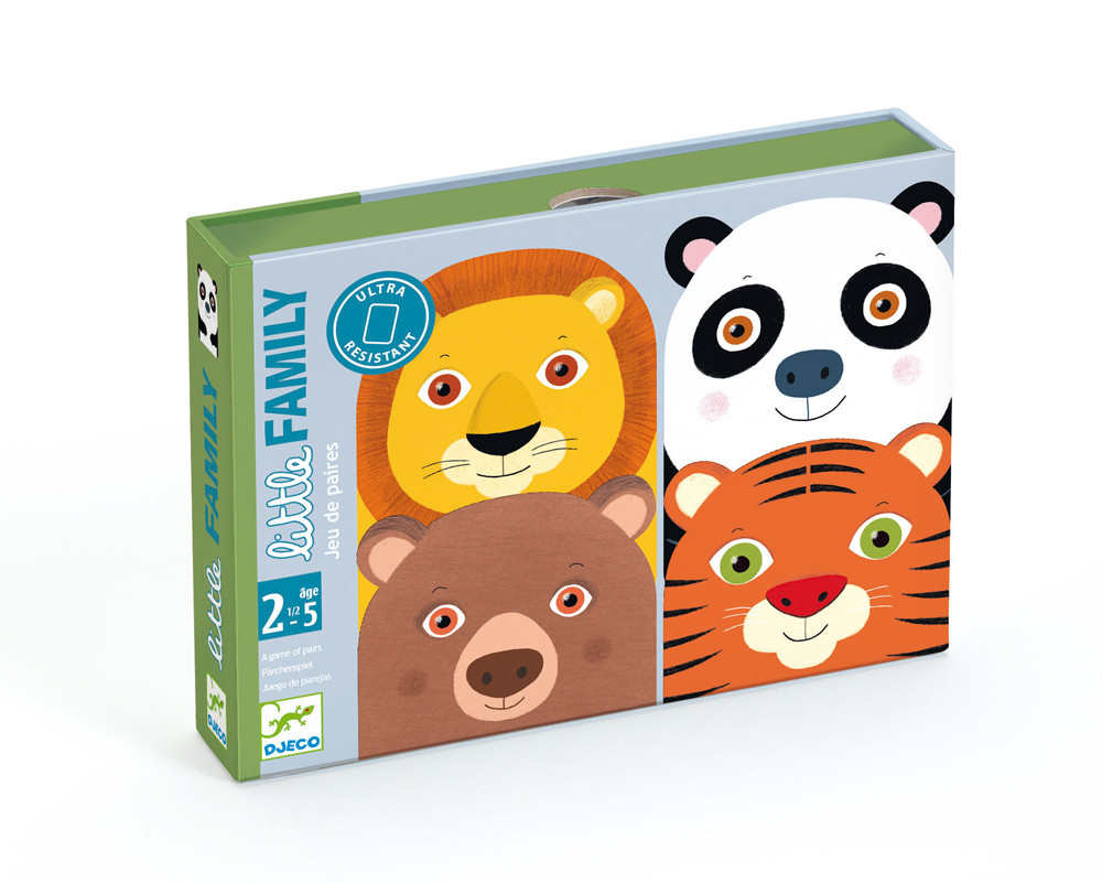 Zvířátka hledají své přátele – pomozte jim je najít! Karetní jednoduchá hra z řady Little od Djeco (původní název: Little Family) pro děti od 2,5 do 5 let. Vše je uzpůsobeno pro malé děti, délka hry, ilustrace i jednoduchá pravidla. Úkolem hráčů je vytvořit a získat co nejvíce dvojic. Doba jedné hry je cca 5 minut. Rozměry balení jsou 15,6 x 11,7 x 2,8 cm.