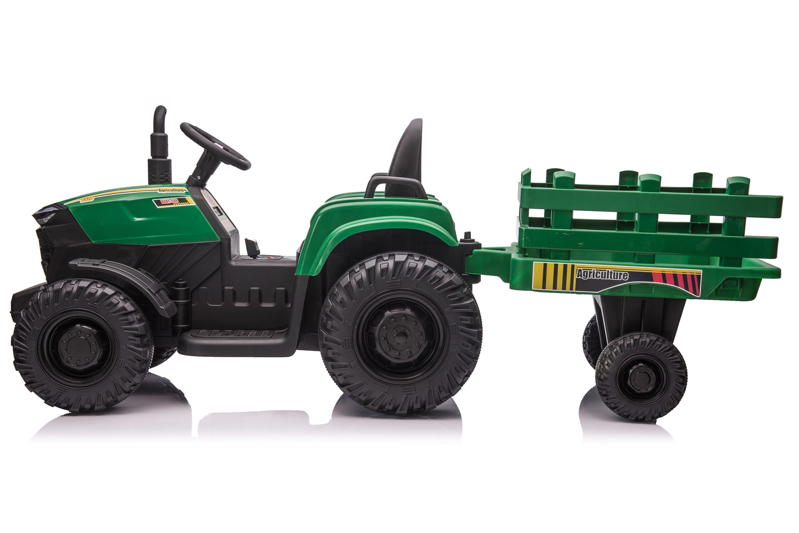 Tento dětský elektrický traktor je skvělou volbou pro vaše malé farmáře. Je vybaven dvěma 200W motory a 2x12V 7Ah (24V7Ah) akumulátory. Má měkká pěnová EVA kola, která jsou odolná a vhodná pro různé druhy terénů.