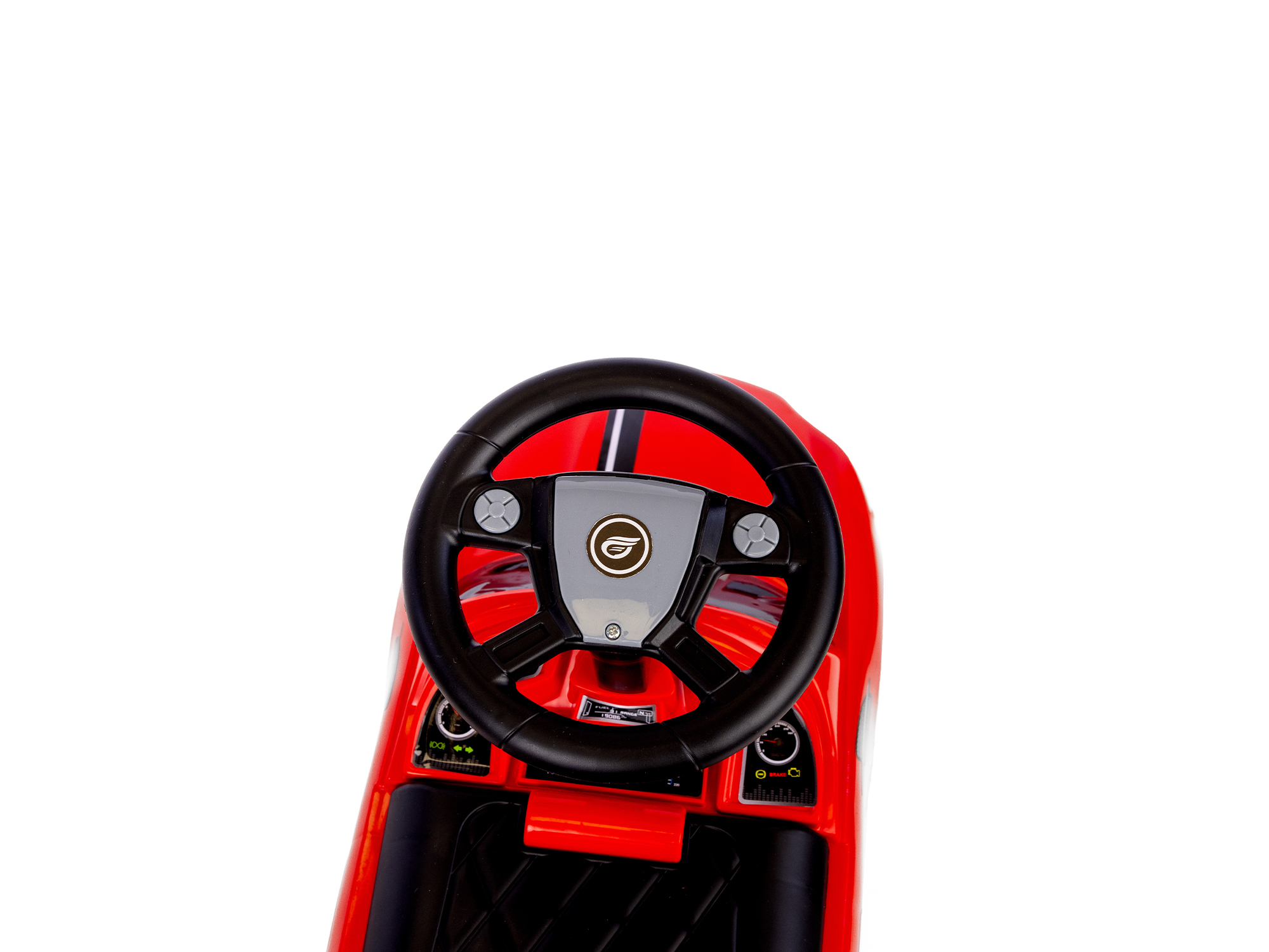 Velkou výhodou tohoto odrážedla pro děti je multimediální volant a ukazatele rychlosti umístěné těsně pod ním. Interaktivní volant je vybaven tlačítky, která aktivují příjemné zvuky. Pět typů různých zvuků způsobí, že se vaše batole ve svém autě bude cítit jako skutečný řidič.