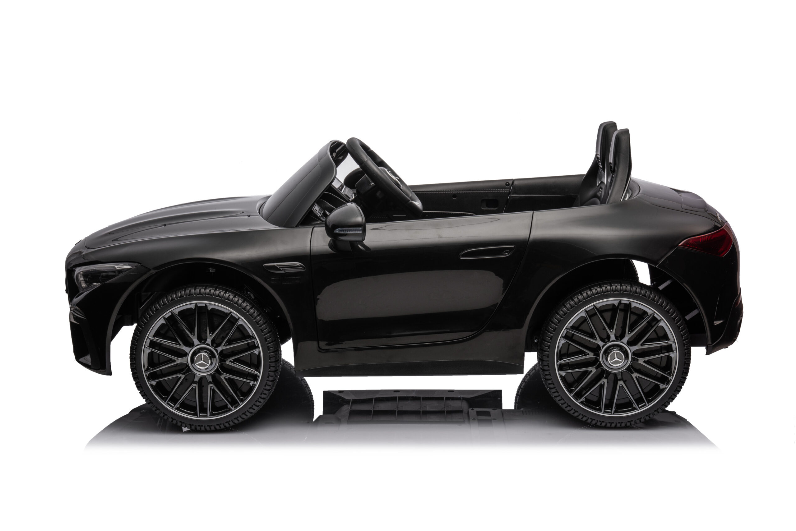 Dětské licencované autíčko Mercedes AMG SL63 přijíždí na měkkých pěnových EVA kolech, která jsou tichá a přizpůsobí se různým typům terénu. Dítě se posadí do pohodlně tvarované sedačky z ekologické kůže a o bezpečnost se postarají bezpečnostní pásy (5-bodové).