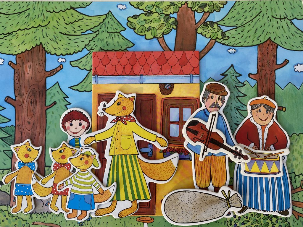 Loutky jsou pevné a příjemné do ruky. Domeček si děti postaví na stojánky. Zadní kulisu si mohou opřít třeba o opěradlo židle, položit na stůl, vyrobit vlastní divadlo z krabice či jinak zaimprovizovat, a jde se hrát. Anebo se podívejte k nám do kategorie loutková divadla, nabízíme různé varianty.