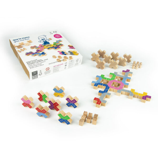 Hra pro 2 hráče od 7 let. Na každém dřevěném kříži jsou 2 ruce jedné barvy a 2 ruce jiné barvy, ale každý kříž je jedinečný, žádné dva kříže nemají stejnou barevnou kombinaci. Spojte ruce stejné barvy, doplňte políčka a vyhrajte! Hra na principu domina rozvíjí logiku a představivost.