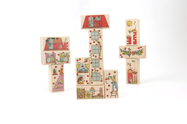 Postavte si svůj vysněný malý dům. V domě Milaniwood se skrývá tolik detailů, které můžete objevit! Postavy, které prožívají svůj každodenní život, jsou obklopeny zábavnými malými zvířátky, květinami a dalšími předměty, vše v příjemných barvách. Postavte si dům vysoký nebo nízký, je to jen a jen na vás. Starší děti si mohou na zadní stranu kostek nakreslit své vlastní nápady. V sadě je celkem 11 kostek.