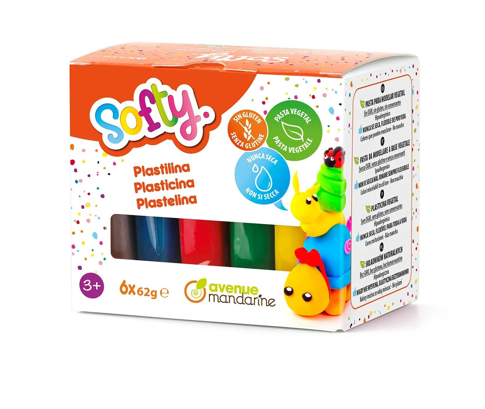Tato sada obsahuje šest válečků měkké modelovací hmoty (každý 62 g) v základních barvách: bílá, modrá, červená, zelená, žlutá a oranžová. Měkká hmota je tvárná i pro malé ručičky. Modelovací hmota Softy zůstává díky svému složení pružná a nevysychá, což umožňuje opakované použití podle potřeby. Díky pevné konzistenci se s modelínou dobře pracuje, aniž by znečišťovala ruce.