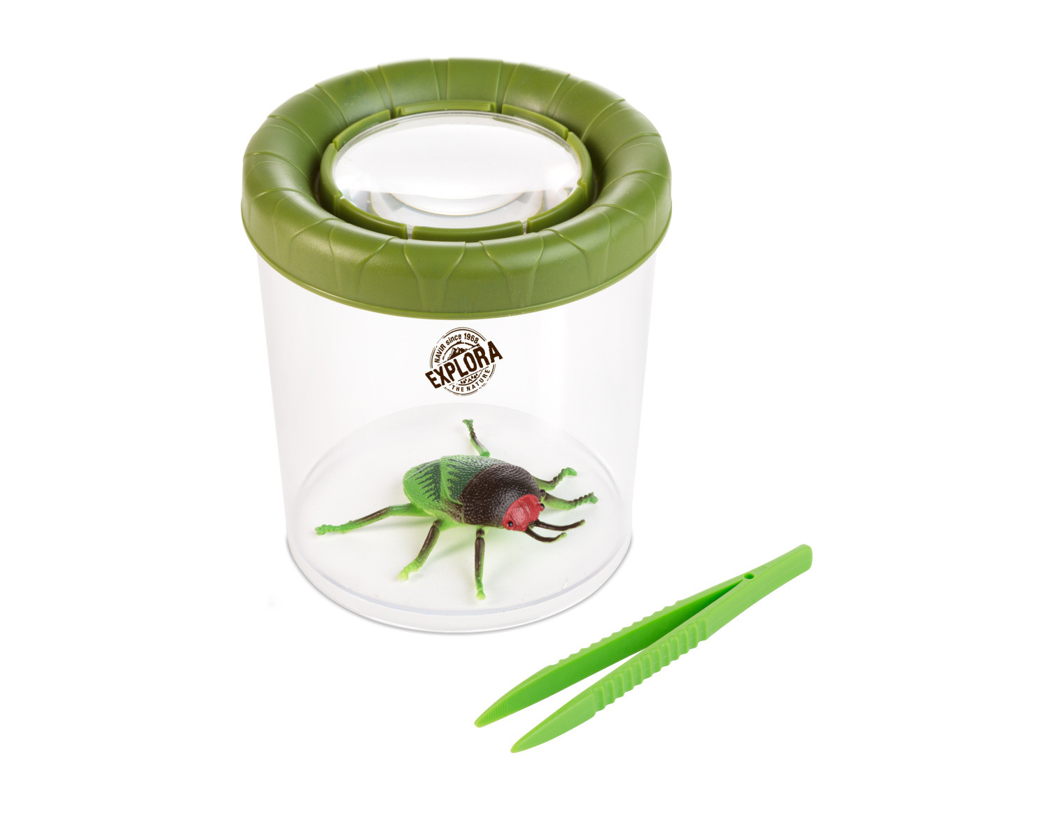Velký kelímek s lupou pro pozorování hmyzu pro malé průzkumníky od 4 let. Součástí kelímku je i pinzeta. Kelímek umožňuje sledování živého hmyzu díky ventilačním otvorům. Po prozkoumání hmyzu jej nezapomeňte pustit zpět do přírody. Lze využít i pro pozorování květin, listů, mincí a dalších malých předmětů. Obal je vyroben z recyklovaného kartonu a potištěn inkoustem na vodní bázi. Vyrobeno z ekologického ABS plastu.
