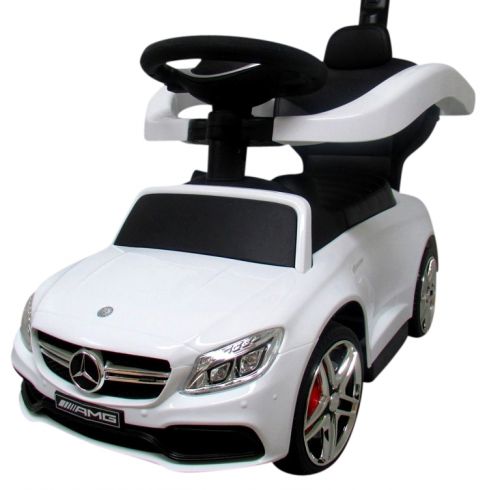 Licencované odrážedlo Mercedes AMG C63 zajišťuje bezpečnost při jízdě díky konstrukci, která chrání proti převrácení. Mezi bohaté vybavení patří klakson a melodie na volantu. Odrážedlo má úložný prostor a držák kelímku.