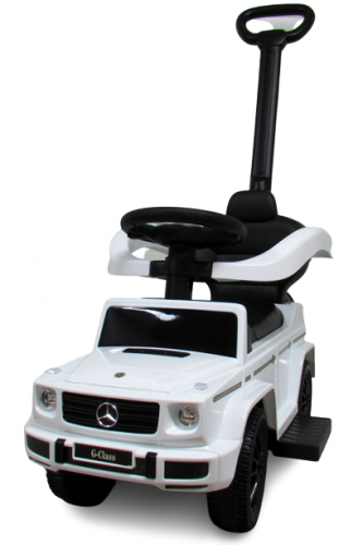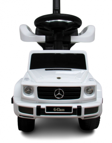 Licencované odrážedlo Mercedes AMG G350 zajišťuje bezpečnost při jízdě díky konstrukci, která chrání proti převrácení. Mezi bohaté vybavení patří klakson a melodie na volantu. Odrážedlo má úložný prostor a odnímatelnou vodící tyč a bezpečnostní madla.