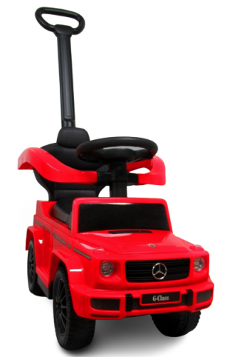 Licencované odrážedlo Mercedes AMG G350 zajišťuje bezpečnost při jízdě díky konstrukci, která chrání proti převrácení. Mezi bohaté vybavení patří klakson a melodie na volantu. Odrážedlo má úložný prostor a odnímatelnou vodící tyč a bezpečnostní madla.