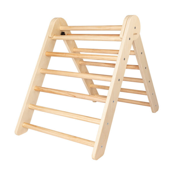 Aktivita na Piklerové trojúhelníku je plná jedinečných příležitostí jak přispět k fyzické kondici, ale i k celkové pohodě dítěte. Děti jsou motivovány vytvářet si na trojúhelníku nové pohybové výzvy, zdolávají je a tak svépomocí pomáhají budovat sebevědomí a pocit spokojenosti se samým sebou. Trojúhelník je lehký a jednoduše se skládá, což oceníte, když jej zrovna nepoužíváte a potřebujete jej prakticky odložit. Trojúhelník doporučujeme rozšířit o prkno se schůdky nebo o lezecké prkno. Vhodné do interiéru.