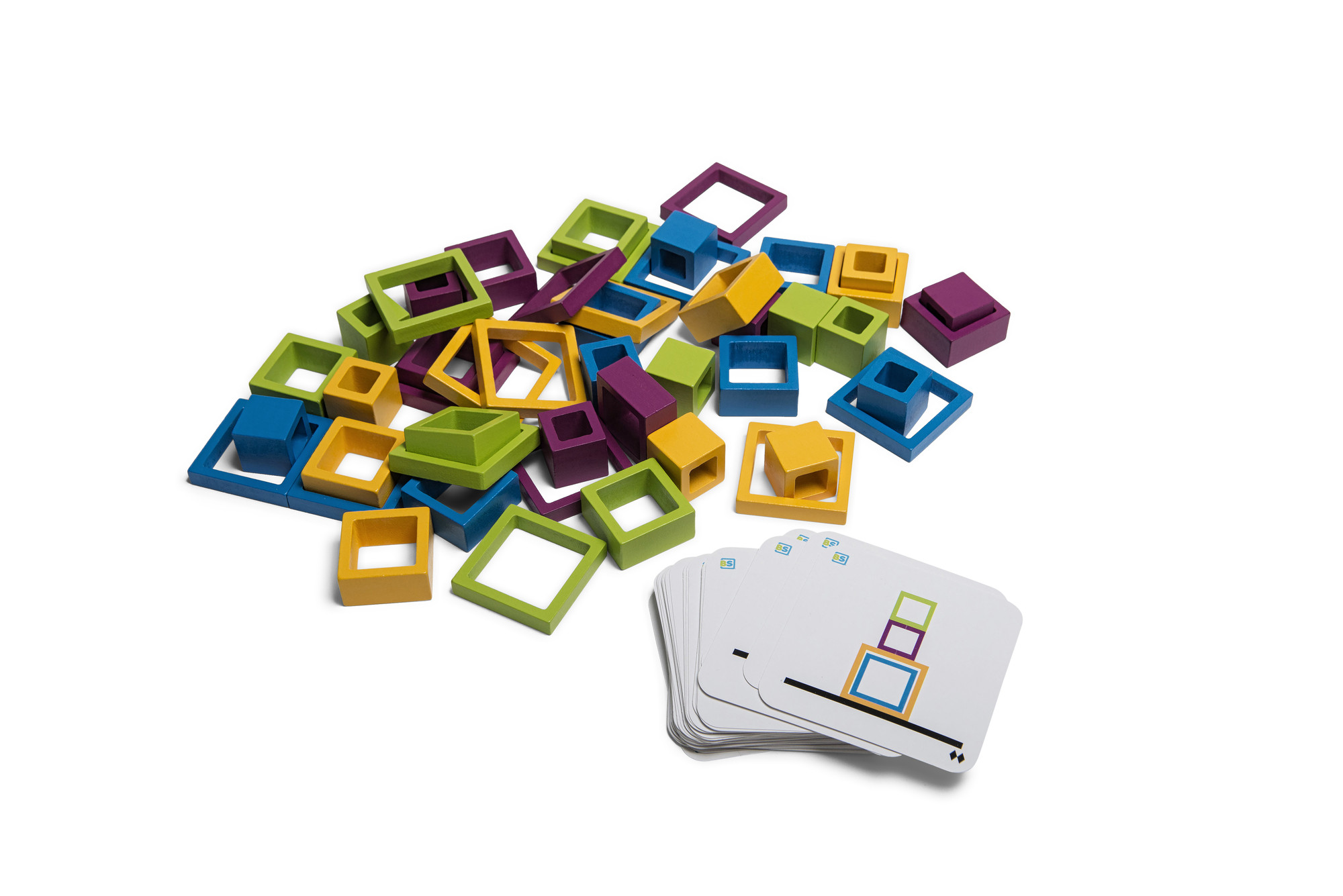 Logická hra pro 2 až 4 hráče od 8 let. Hráči otočí jednu kartu se vzorem a snaží se co nejrychleji reprodukovat obrázek pomocí rámečků. Kdo je nejlepší a nejrychlejší stavitel?