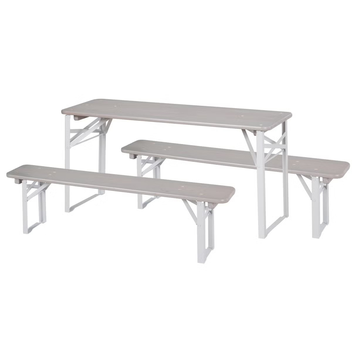 Dětské lavice a stůl lze snadno složit, což usnadňuje uskladnění a šetří místo. Bezpečná konstrukce s zaoblenými hranami zaručuje, že je nábytek vhodný pro děti již od 24 měsíců. Sada je ideální pro 4 děti (max. 80 kg).