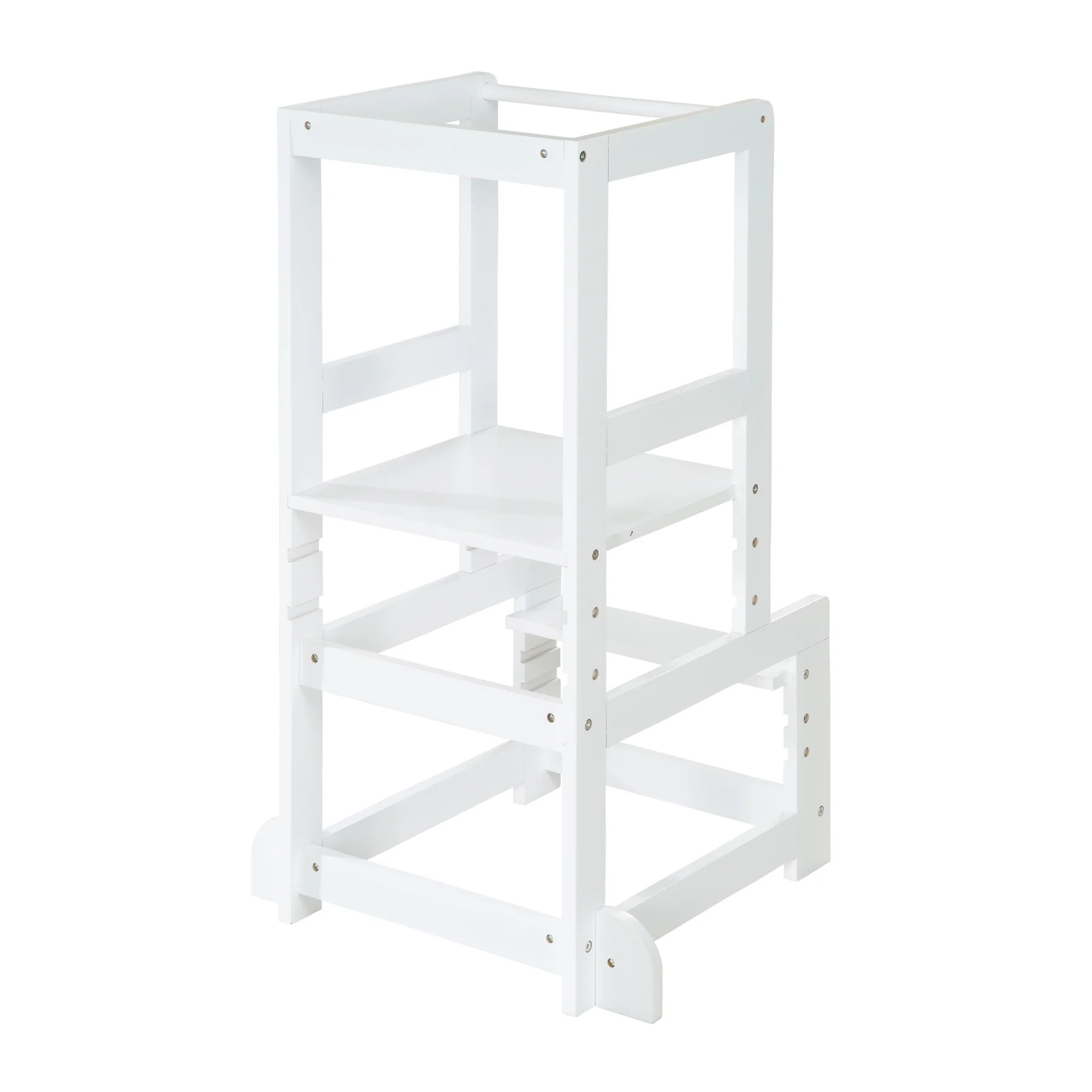 Montessori učící věž je velmi stabilní a bezpečná stolička pro děti, která je navržena podle principů Montessori tak, aby podporovala samostatnost vašeho dítěte. Díky třístupňově nastavitelné výšce plošiny (35 / 41,5 / 47,5 cm) a schůdku (15 / 19 / 24 cm) lze učicí věž využívat po mnoho let.