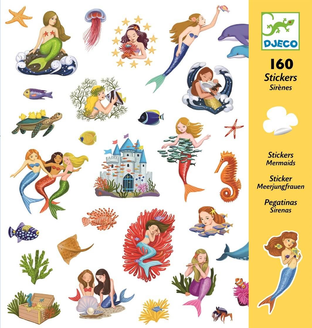 Samolepky pro dívky zobrazují mořské panny a jejich život pod hladinou. Samolepky představují pro děti tvůrčí zábavu. Samolepkami si mohou ozdobit sešity, deníčky, polepit dárky. Fantazii se meze nekladou. Sada obsahuje celkem 160 samolepek na 4 arších.