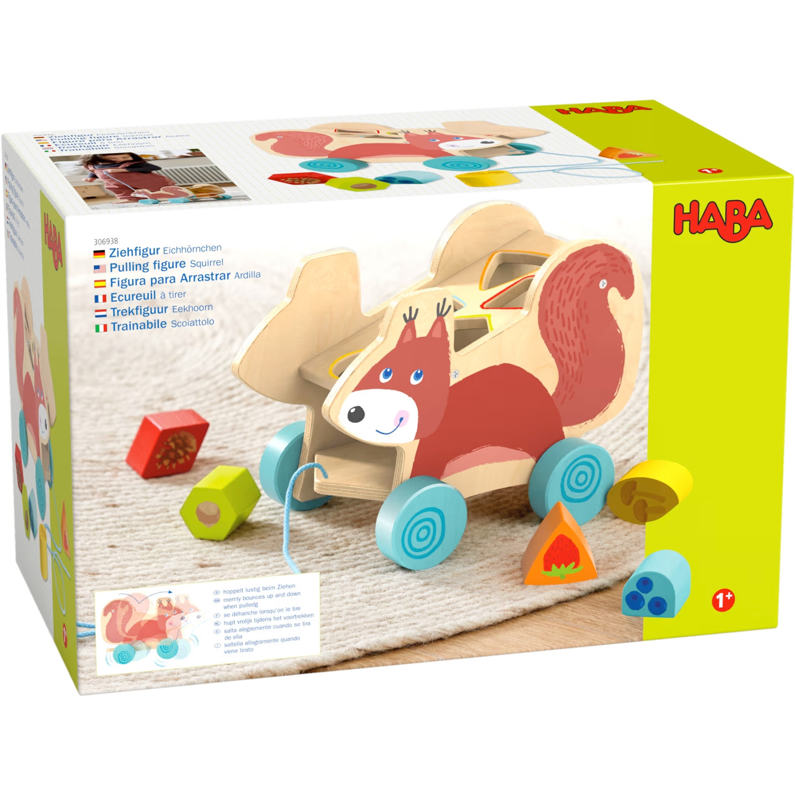 Tahací hračka a vkládačka pro děti od 1 roku. Nakrmte dřevěnou veverku pamlsky a pak se vydejte společně na procházku. Součástí hračky je 5 dřevěných kostek, které děti vkládají do správných otvorů. Hračka podporuje rozvoj jemné motoriky a učí děti rozpoznávat tvary a barvy.