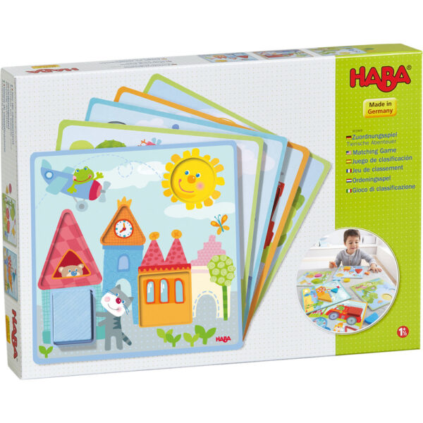 Slunce je kulaté, střecha má tvar trojúhelníku. A jak vypadá dům? Didaktická hra (v originále Animal Adventures) představí dětem různé tvary a barvy. Dřevěné tvary je třeba umístit na správné místo na šablonách. Dobrodružství zvířátek je hra plná zábavy, která rozvíjí vědomosti a procvičí jemnou motoriku.dovednosti. Vhodné pro děti od 2 let.