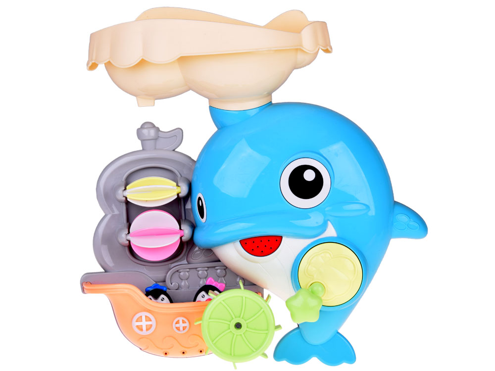 Barevný veselý delfín je skvělá hračka do vany, která přidá zábavu během hry ve vodě. Delfín v atraktivních barvách umožní vymýšlet různé hry. Hračka je vyrobena z plastu a obsahuje spoustu překvapení. Otvor v ústech slouží k přelévání vody, jsou zde kolotoče, očička a připevněná loďka s malými tučňáky. Hračku lze snadno připevnit k hladkému povrchu pomocí přísavek, které jsou součástí balení.