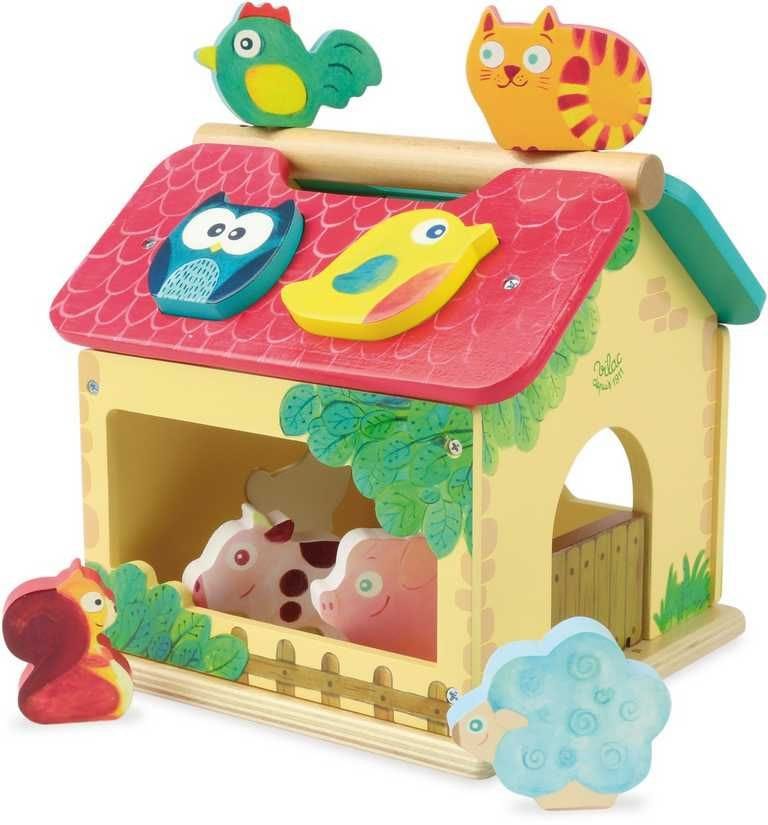 Zábavná motorická hračka se spoustou aktivit pro děti od 18 měsíců. Přenosný dřevěný domeček farmy obsahuje spoustu zvířátek. Děti je mohou vkládat do domečku příslušnými otvory a přitom si hrát na venkovskou farmu s nekonečnou dětskou fantazií.Rozměry hračky jsou 21×19,5×20 cm.Hračky Vilac mají značku francouzské agentury ADEME, to znamená, že tyto dřevěné hračky jsou vyráběny ekologicky. Šetří životní prostředí, neznečišťují půdu, vodu a vzduch, neplýtvají energiemi.