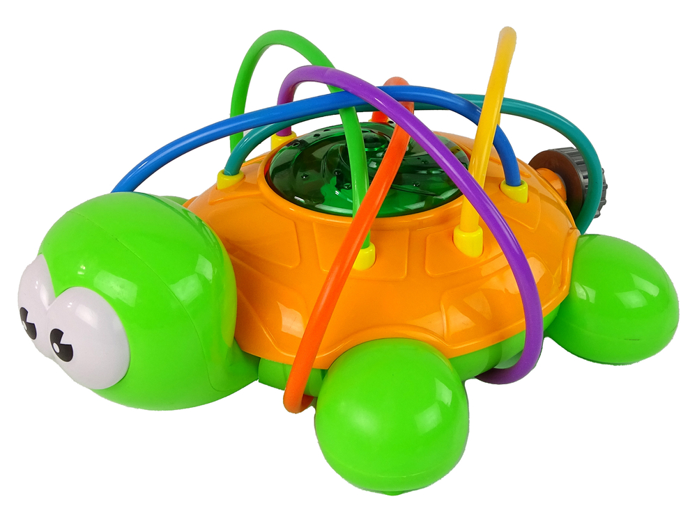 Hračka má 6 různobarevných trubiček, které se táhnou ze stran želvy. Pod tlakem vody se pohybují a vytvářejí veselou vodní fontánu.